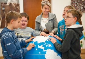• La akompana al la programinformo foto prezentas edukatojn de Blindulcentro en Laski, establita de Róża Czacka.